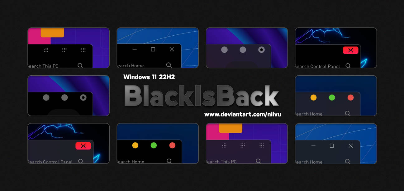 BlackIsBack for Windows 11 22H2 Admin 3 years ago This is a custom theme for Windows, make sure it matches your build version Go to file Need help? Watch this tutorialOr leave a message in the comments Remember to thank the author 🙂